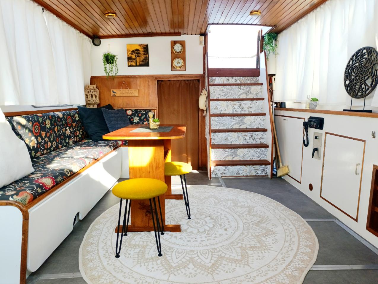Après un an et demi de rénovation réalisée en grande partie par moi-même, ce bateau a été repensé dans une logique simple et respectueuse de l’environnement. J’ai privilégié autant que possible la récupération de matériaux et une approche durable, en redonnant vie à l’existant plutôt que de remplacer systématiquement.