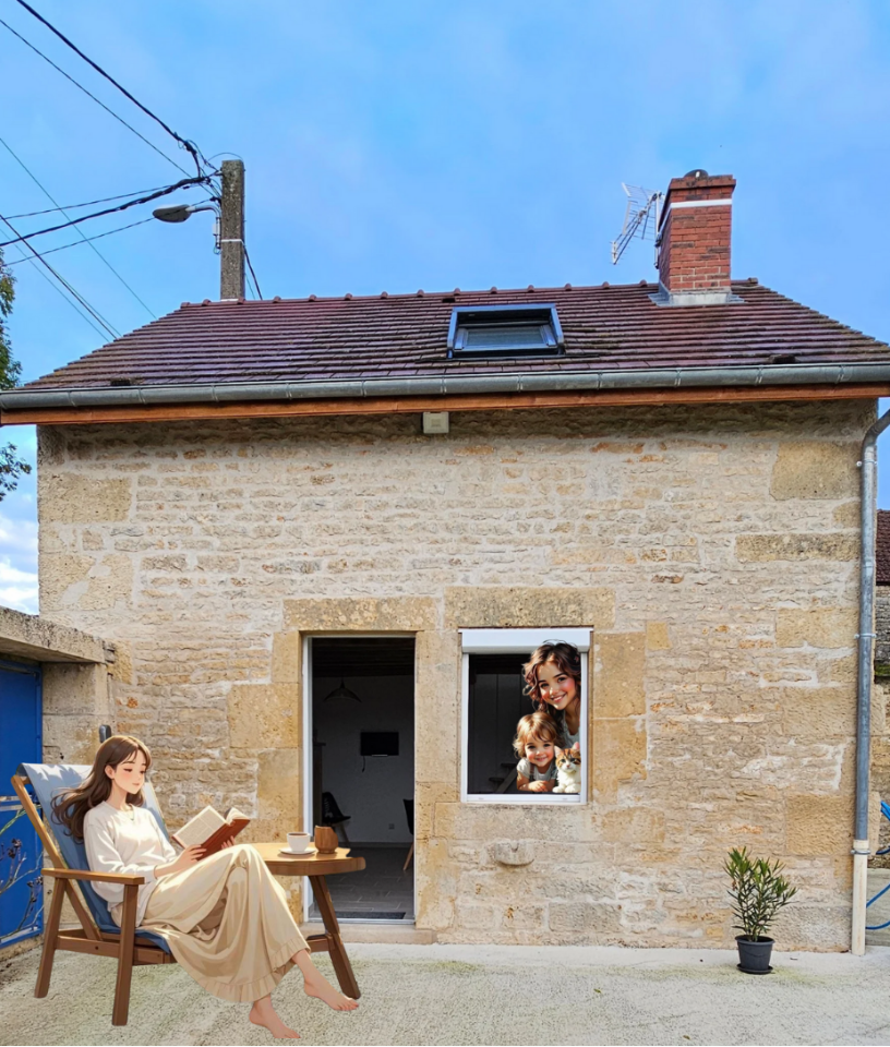 À l’intérieur, le confort moderne se mêle au charme de l’ancien dans une ambiance chaleureuse. La pièce de vie accueille une cuisine équipée, un espace repas, un poêle à granulés, un canapé BZ et les WC. À l’étage, une chambre lumineuse avec lit double, ainsi qu’un lit d’appoint et le coin douche complètent l’ensemble. Le logement peut accueillir confortablement jusqu’à 3 personnes (4 ponctuellement).